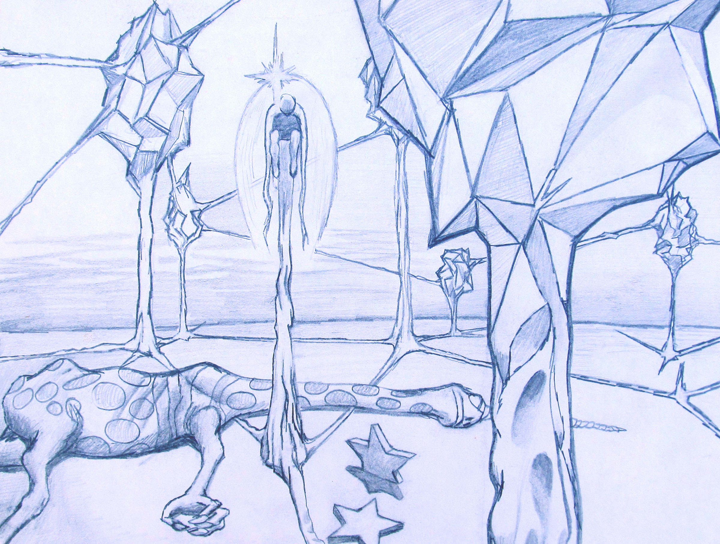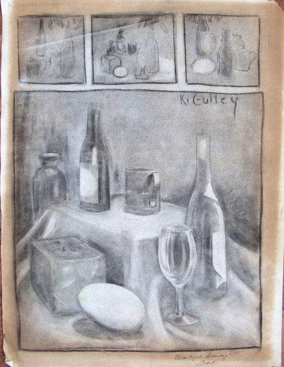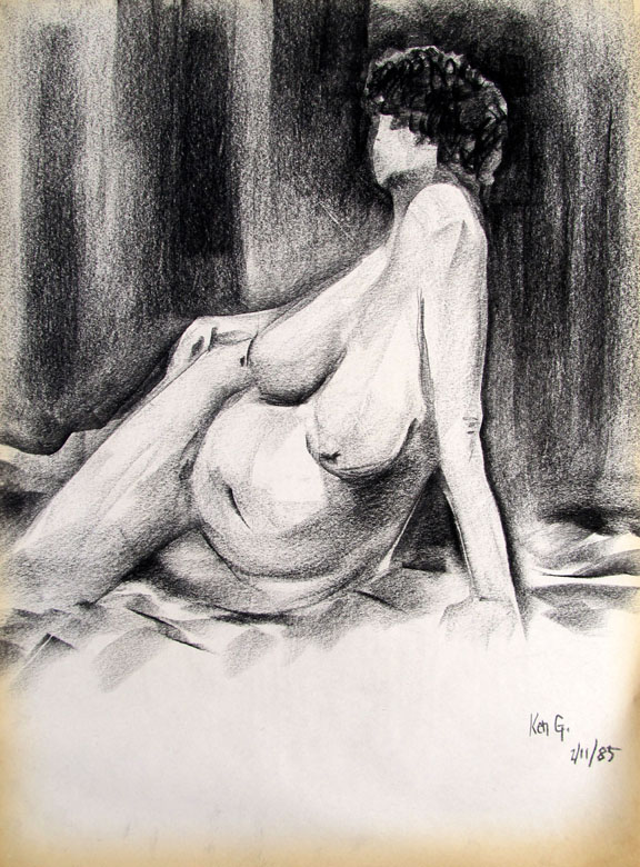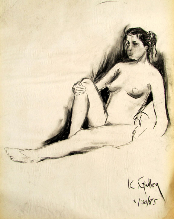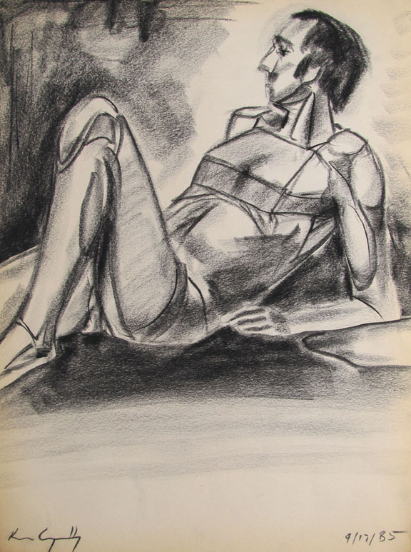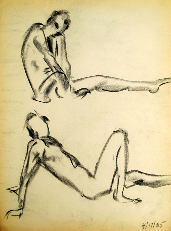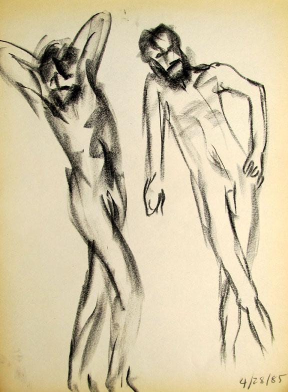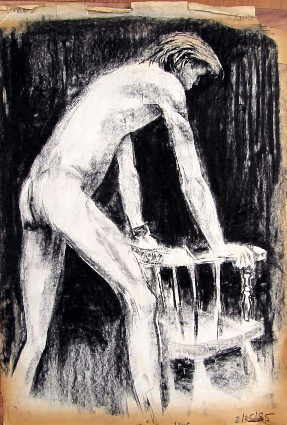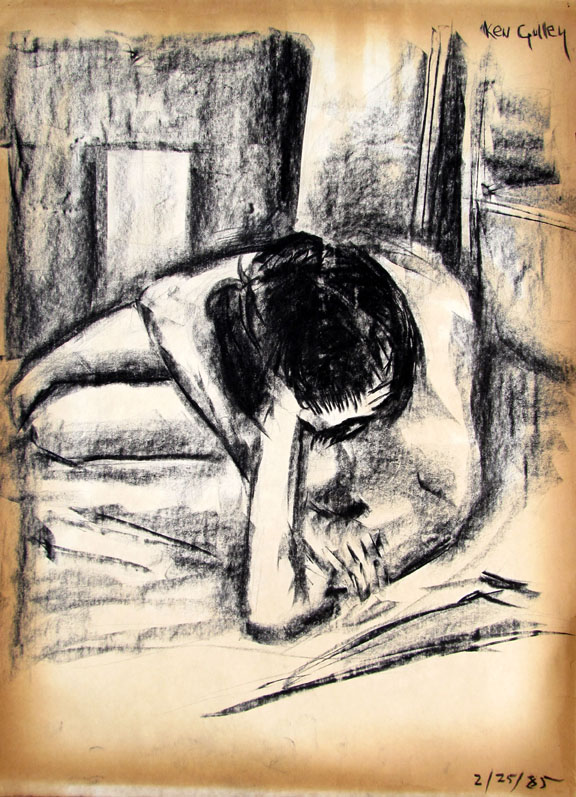 This sketch was a study for an oil painting I created which was a 9'x7' oil painting and hung at one end of the hallway of the "Upstairs Art